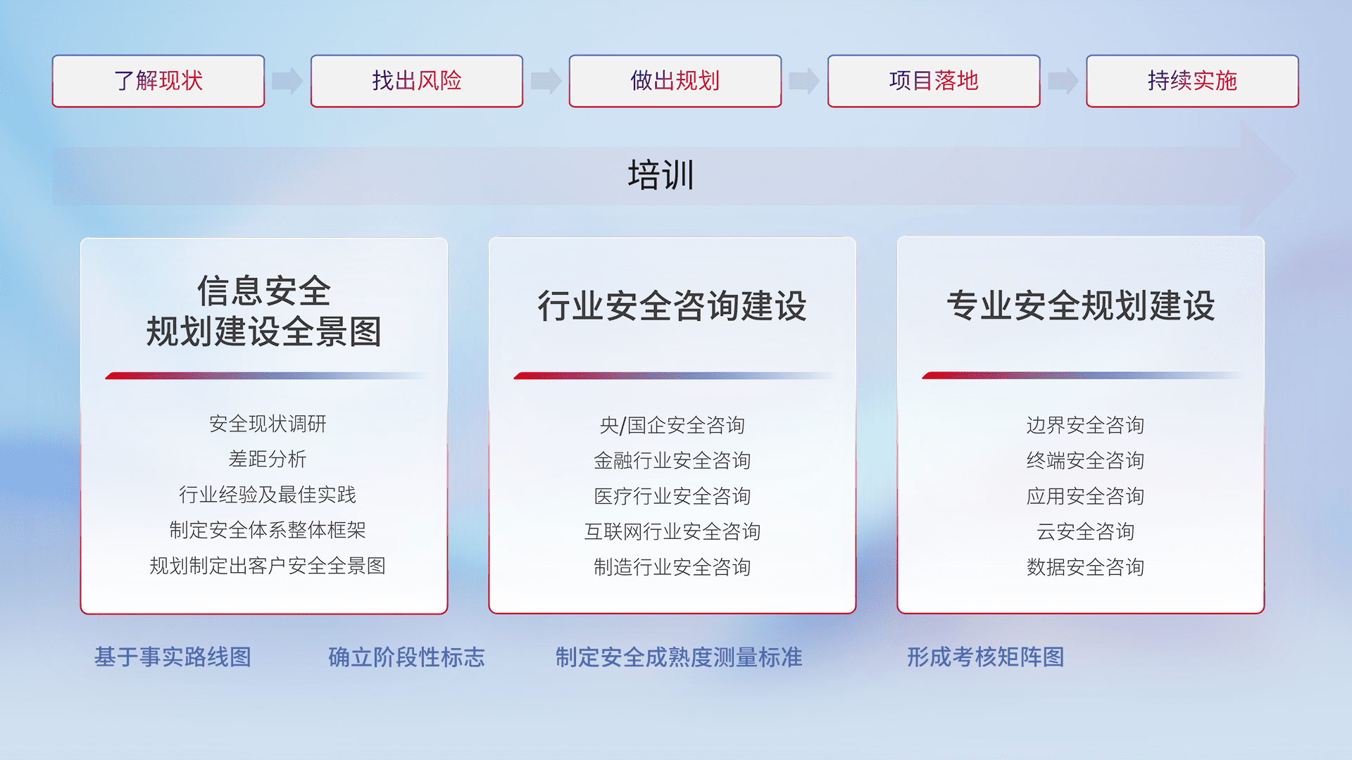 针对客户行业特性,,将宏观的安全战略和需求,,通过专业的交付服务,,实现项目落地,,,为客户提供标准规范的集成交付服务。。。。